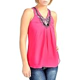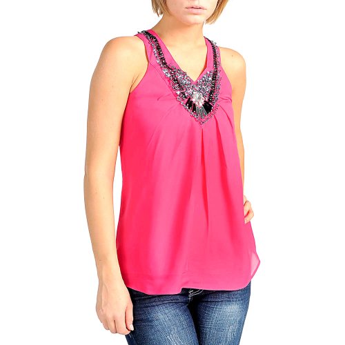 Fuchsia V-Neck Tie Back Embellished Flared Top Blouse Review