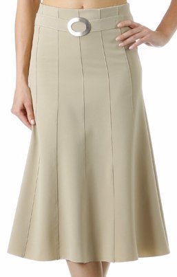 Knee Length Flared Skirt with Seaming and Belt Detail ( 4 Colors ) Feature
