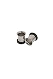 This pack includes two plugs that are flared on one side and are made of surgical stainless steel.